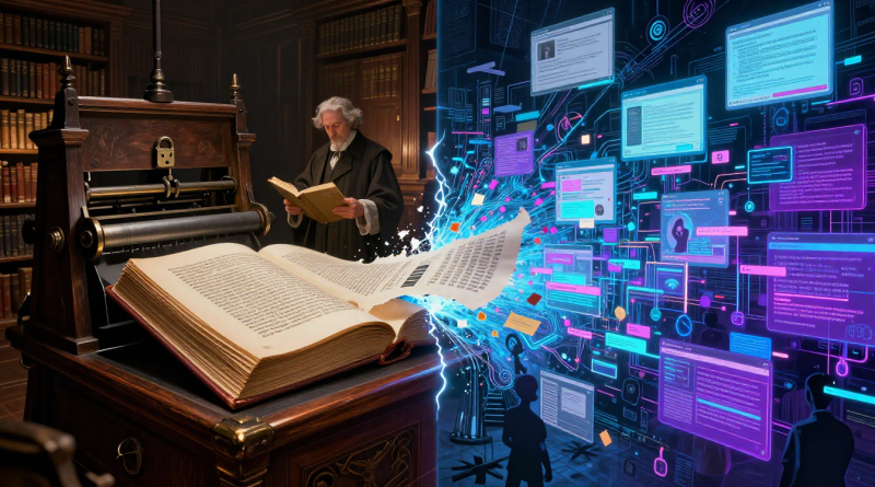 Сравнение с книгопечатанием укоренено в западной интеллектуальной традиции. Для неё изобретение печати — фундаментальный цивилизационный поворот. Даже если параллель не универсальна, её анализ остаётся содержательным: через неё можно увидеть, как менялось понимание цифровой эпохи.