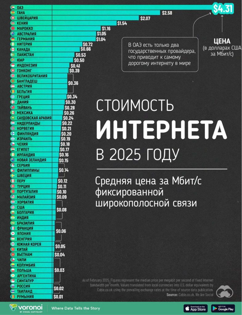 Стоимость Интернета в 2025 году в разбивке по странам